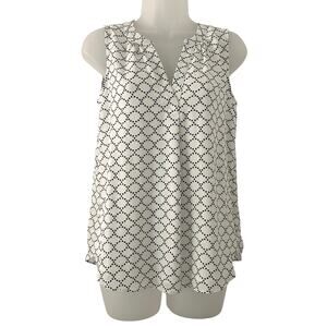 Tahari Women's Sleeveless V-Neck Polka Dot Geometric Dressy Blouse S Small New