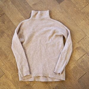 Tahari Womens Small mock neck tan beige PURE LUXE 72% Cashmere Blend Sweater