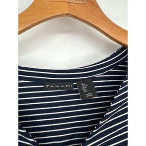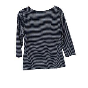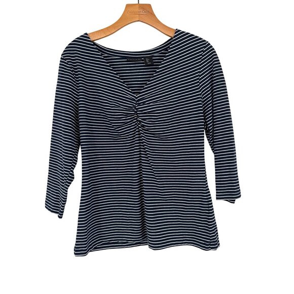 Tahari Womens Striped V-Neck Top Navy White3/4 Sleeve Cotton Blend Size Large