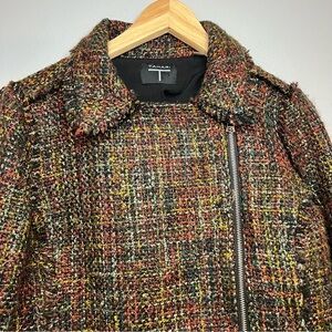 Tahari Women's Sz 8 Twill Knit Frayed Edge Zip Up Blazer Jacket Multicolor Motorcycle