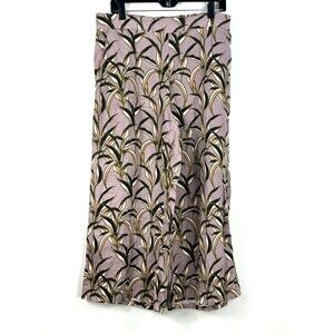Tahari Womens Sz L Linen Purple Wide Leg Cropped Pants Pull On Elastic Waist E2
