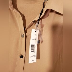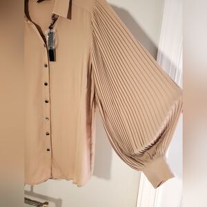 Tahari Women's Tan Long Sleeve Blouse Dress Shirt Button Down Size M