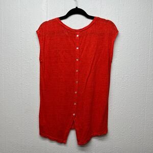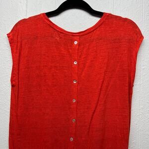 Tahari Womens Top Small Linen Button Back Flowy Coastal Beachy Tomato Girl Chic