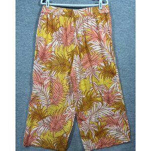 Tahari Womens Tropical Print Linen Pants XL Yellow & Pink