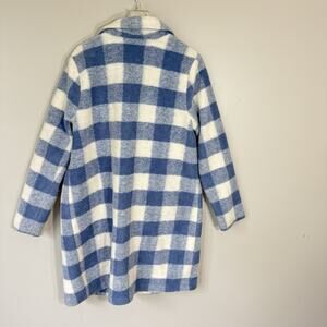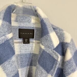 Tahari Women's Windowpane Blue Plaid Wool Coat Jacket Size M Classic