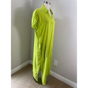 Tahari Womens XL Lime Green Linen Rayon Midi Dress Short Sleeve Pockets Casual