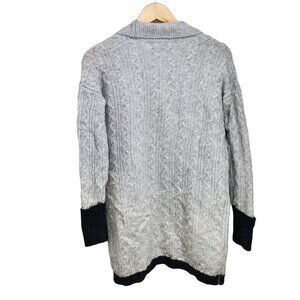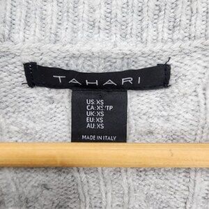 Tahari Womens XS Cable Knit Cardigan Sweater Made In Italy Acrylic Wool Gray