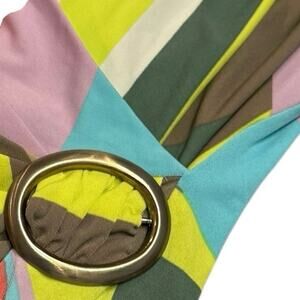 Tahari Women’s multicolor bright abstract faux wrap dress 16