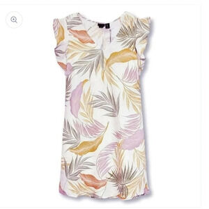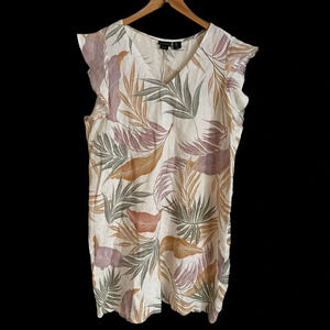 Tahari Womens plus size 1X 100% Linen Tropical Print Shift Dress Ruffle Sleeve