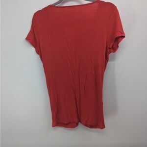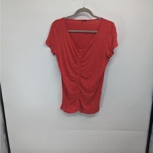 Tahari Women’s red V-neck top with gathered front short sleeve lightweight material in great preowned condition size large