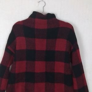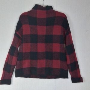 Tahari Wool Blend Mock Neck Knit Sweater Size Medium Red, Black Buffalo Plaid