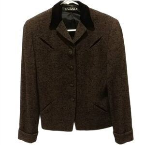 Wool blend tweed Tahari Jacket Blazer quality made and beautifully detailed with a velvet like collar. dressy career piece fashionable timeless beauty