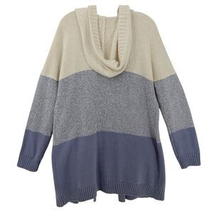 Tahari XL Blue Cream Colorblock Hooded Cardigan