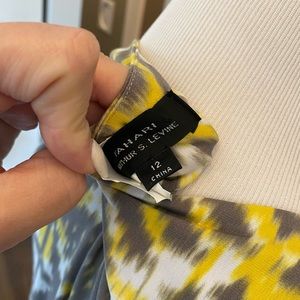 Tahari 💛 Yellow And Grey 🩶 Size 12 Faux Wrap Dress EUC