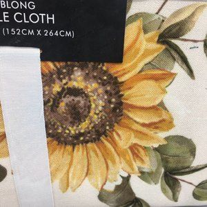 Tahari Yellow Sunflower Tablecloth 60x104 Summer Fall Floral Thanksgiving Decor