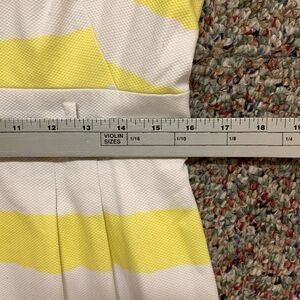 Tahari Yellow White Stripe Cotton Pique V-Neck Sleeveless Knee Length Dress 10