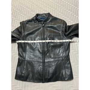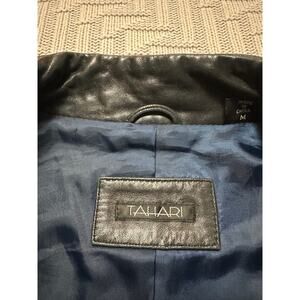Tahari black leather jacket, size M. Previously loved and in excellent used condition. Non smoking and pet free house.
