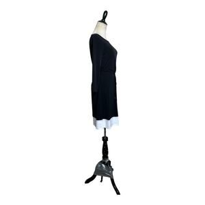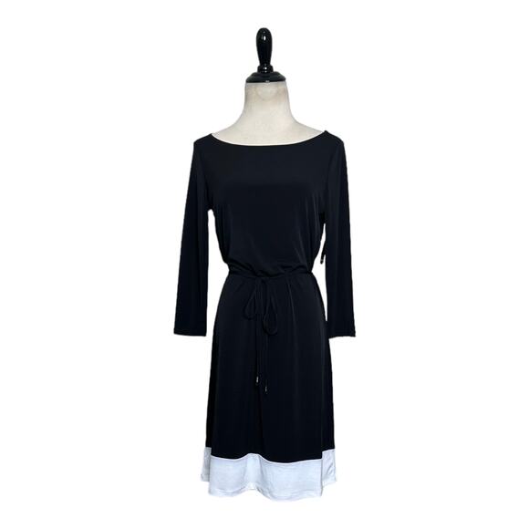 Tahari black with white trim 3/4 sleeves belted mini dress size XS