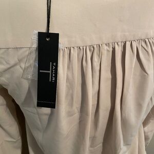 Tahari blouse long sleeve v neck gray womens extra small. Great for the office. Gorgeous button detail on cuff. New with tags. Tranquil taupe color.