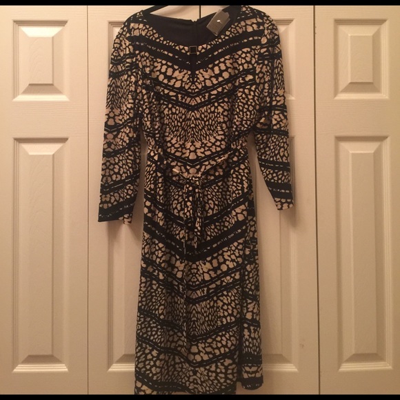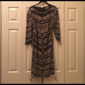 Gently worn Tahari by ASL patterned shift dress with tie belt - size 12. This dress has been worn to two weddings and is freshly dry cleaned (tag still attached). The dress has 3/4 sleeves and a keyhole at the neck. Please feel free to ask any questions!