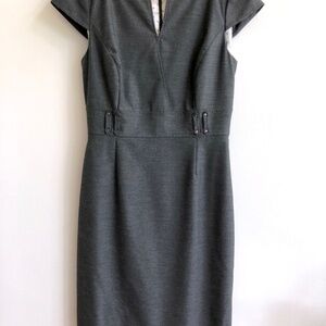 Tahari by Arthur S. Levine Belted Split Neck Sheath Dress - Size 4, gray