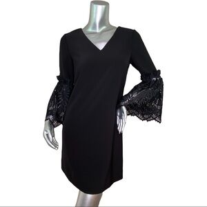 Tahari by Arthur S. Levine Black Bell Sleeve Shift Dress Woman's Size 2