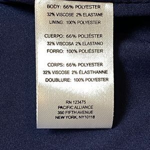 Materials: 66% Polyester, 32% Viscose, 2% Elastane