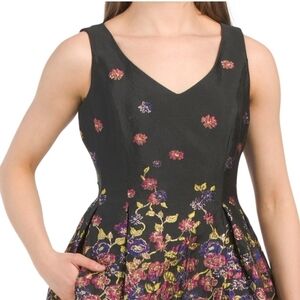 Tahari by Asl Fit and Flare Midi Metallic Floral Accents Cocktail Dress