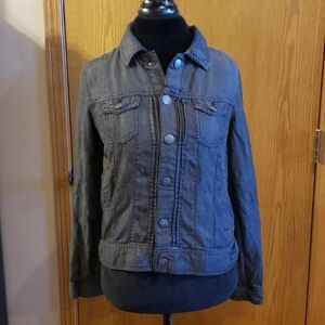 Nice tahari black grey chambray style shirt jacket very light weight no issues size small