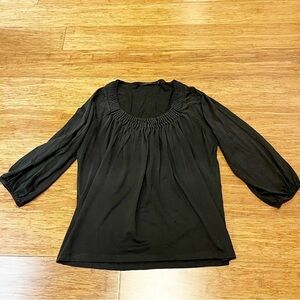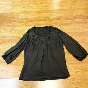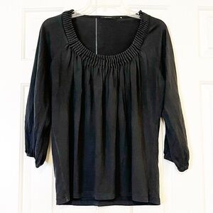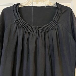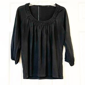 Tahari cotton silk blend pleated scoop neck 3/4 sleeve black top. Size women's medium