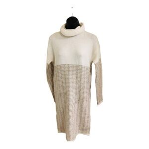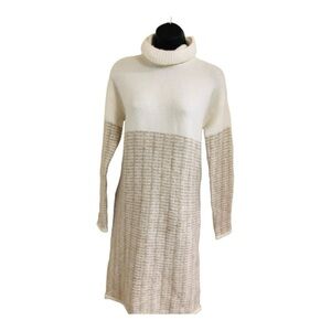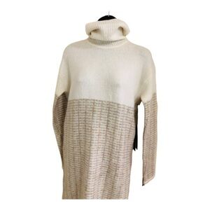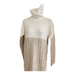 Tahari cream & tan cozy Oversized collar extra long turtleneck sweater dress size large brand new