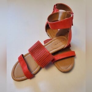 Tahari dance sandals in pre owned barely worn condition. Perforated suede leather upper with zipper on heel for easy on and off. size 9