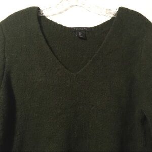 Tahari forest green v-neck sweater size large. Great preworn condition see photos for details. Approximate measurements 27” shoulder to hem and 19” pit to pit unstretched.