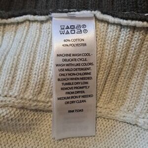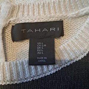Tahari lightweight knit sweater size Large- made of cotton/Polyester in olive green and cream.