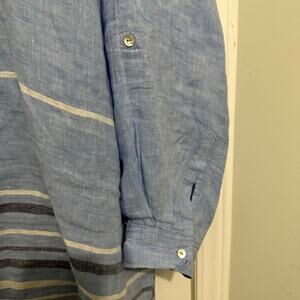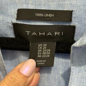 TAHARI Blouse Womens 2x Top Long Sleeve Linen Blue