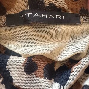 Tahari mesh turtleneck leopard print top 3/4 sleeves women's size small
