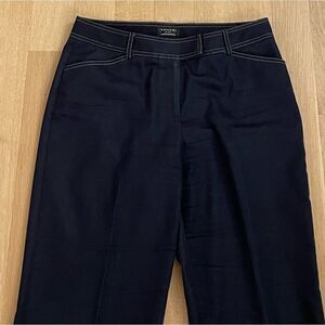 Tahari navy blue wide-legged pants. They are a size 6 and have a hook and button closure. The fabric imitates denim but is a non-rigid fabric. The pants are super comfortable and stylish. I am also posting a matching jacket in my closet that you can wear together with it. Message for questions ❤️