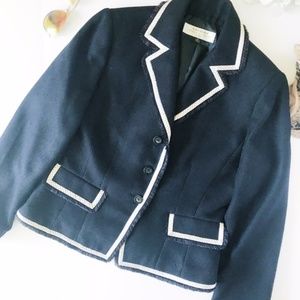 You can never go wrong with a black blazer. I love this blazer and the really fun trim gives it a pop of interest . Make me an offer. L: 23 w:15