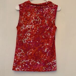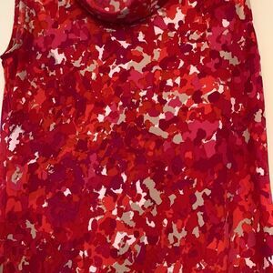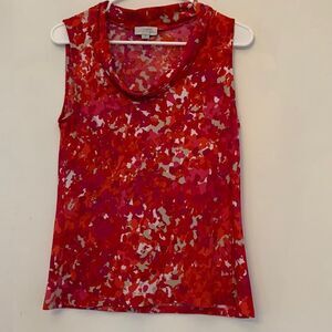 Tahari red and pink sleeveless blouse with cowl neck. Size S Length 23” Bust 16”