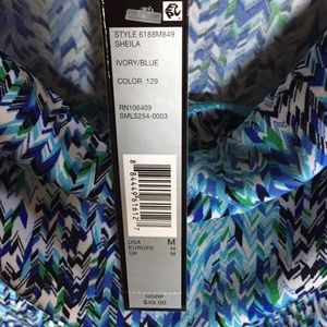 Tahari Arthur S. Levine Short-Sleeve Printed Drape Neck Blouse - New with Tag - Size: medium - Colors: black/white/blues/green. - 95% polyester and 5% spandex Smoke Free Home! Experienced and fast shipper!