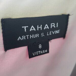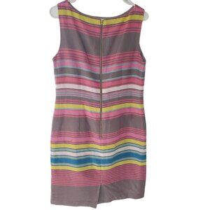 Tahari silk Linen striped Sheath Shift Wedding Event dress size 8