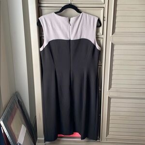 Beautiful sleeveless dress by Tahari in size 12. I used to love this for work events. Color block with hot pink, black, and gray. Formfitting. Zipper back closure. Great condition. Smoke-free home.