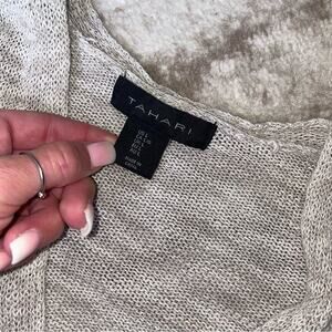 Tahari sweater SZ Large open front lightweight cardigan in tan & cream