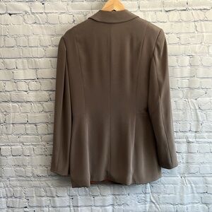 Elevate your wardrobe with this stylish Tahari blazer, perfect for any occasion. The solid brown color and pant suit style make it versatile for both casual and workwear outfits. The blazer features a regular length jacket with long sleeves and a lightweight design, making it suitable for fall, winter, and spring seasons.