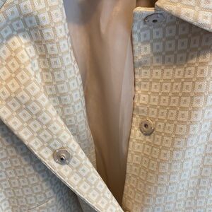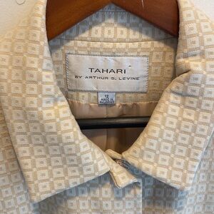 Tahari trench coat. Geometric jacquard print. Gold cream color.