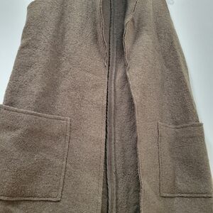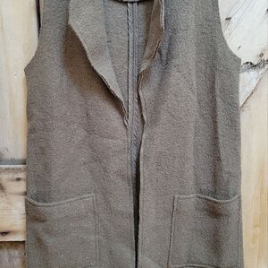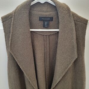 Tahari Long Open Cardigan Vest Duster size SMALL Wool Blend Front Pockets