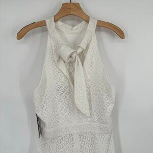 Tahari white eyelet Sleeveless Dress Womens Size 10 cotton mock neck tie new