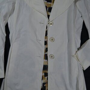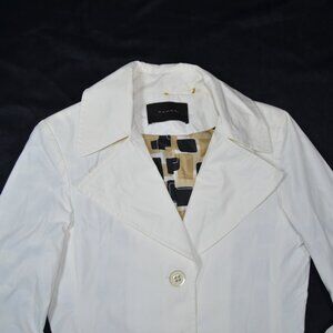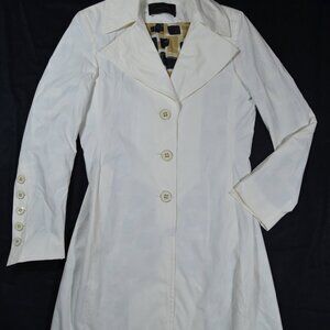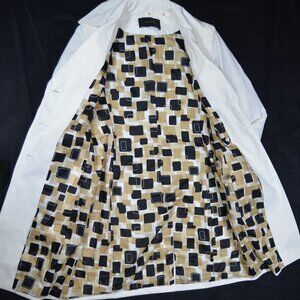 Tahari white trench coat, water resistant mod trench jacket, buttons, pockets M