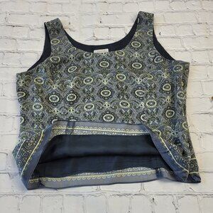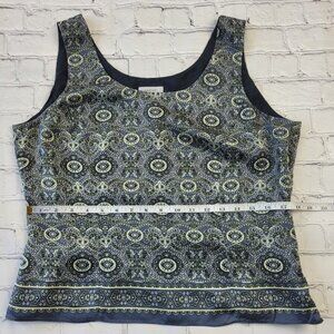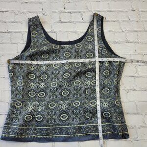 Gently used excellent condition Tahari woman’s black green printed 100% silk blouse tank top size 12