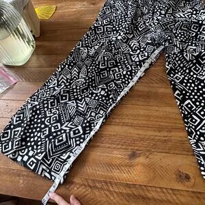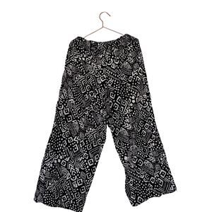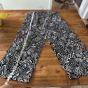 Tahari woman’s black & white geometric print linen wide leg cropped pants large